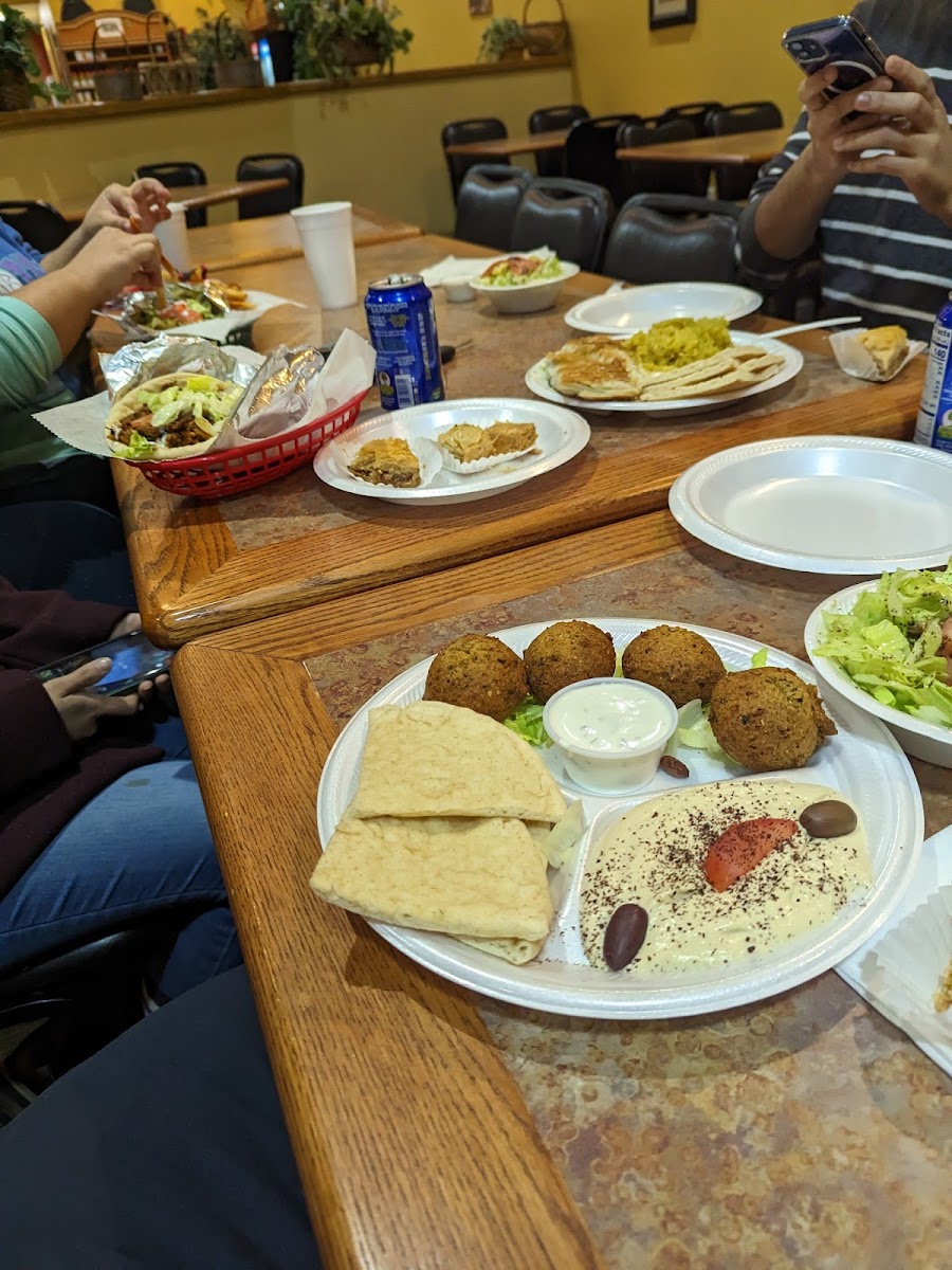 When it comes to Café Aladdin's menu, there’s something for everyone. A standout is their Combination Plate, which features a perfect balance of Greek favorites. It's a great way to try a little bit of everything-savory grilled meats, flavorful rice, and fresh vegetables. Another must-try dish is the Falafel Plate, served with crispy, golden falafel balls paired with refreshing sides. For those who want something lighter, the Aladdin's Salad is an excellent choice, loaded with vibrant veggies and a tangy dressing that perfectly complements the dish.
