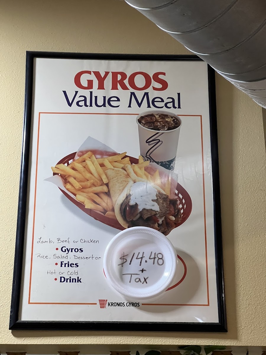 The Sandwich Combinations include delicious options like the Vegetarian sandwich for $3 and the savory Meat Lovers Gyro at $12. Other highlights in this category include the Shish Kabob (Souvlaki) for $11, and the unique Pita Taco at $8.